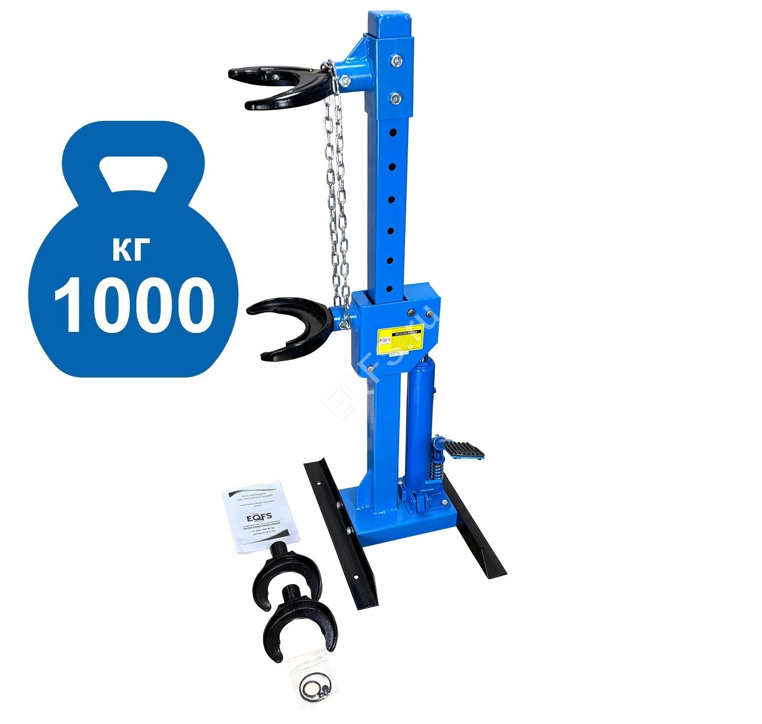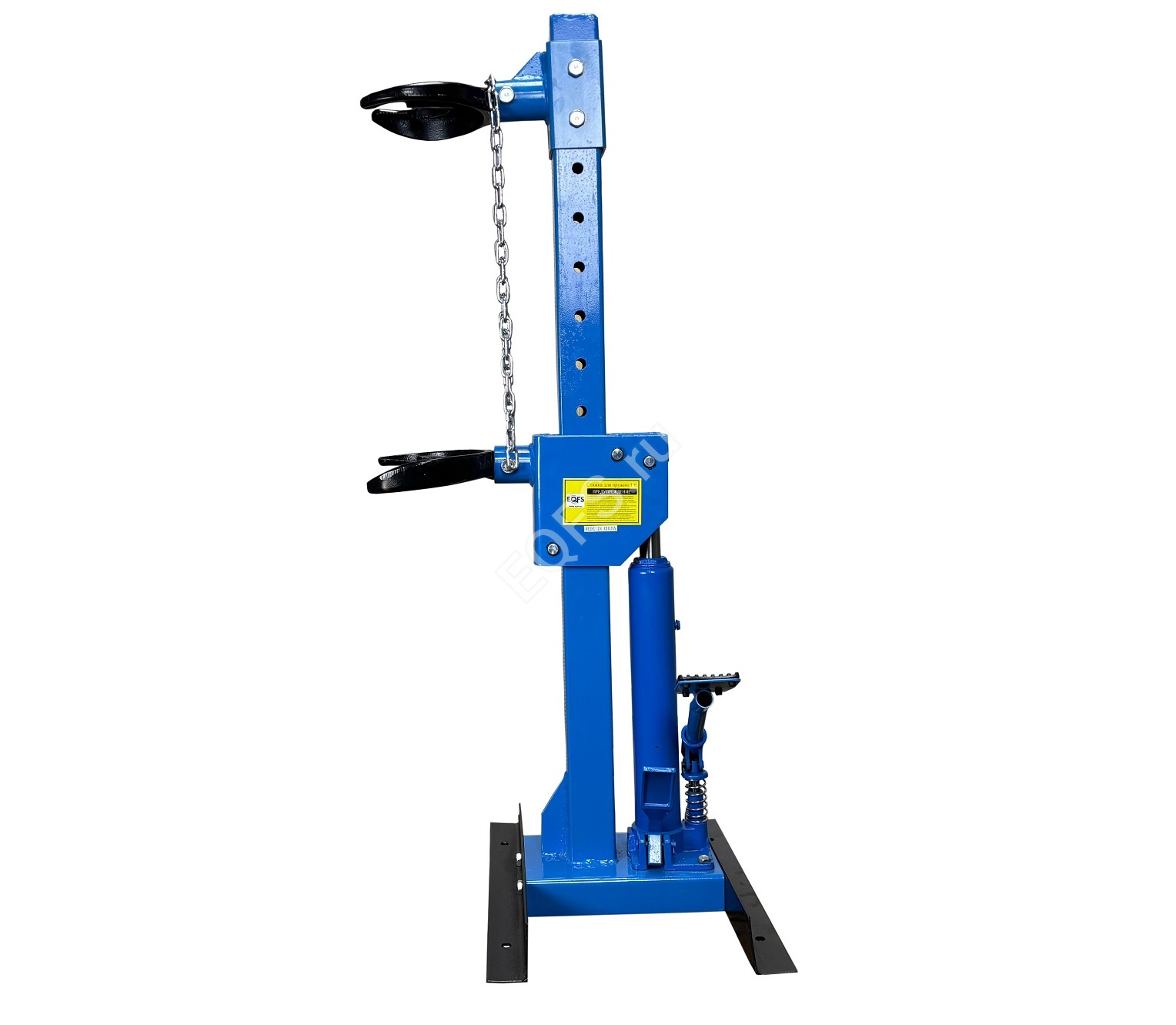Профессиональная. Напольная с ножным приводом. Облегчает монтаж / демонтаж особо прочных пружин со стойки. Для работы со стойками легковых автомобилей, джипов, микроавтобусов и коммерческого автотранспорта. Конструкция изделия сварная с использованием легированной стали. Гидравлическая с усилием 1000 кг. Ход поршня 325 мм. Диаметр пружины 101 - 180 мм. Рабочая длина min-max 195-520 мм.Особенности конструкции ES-0301F стяжки для пружин: