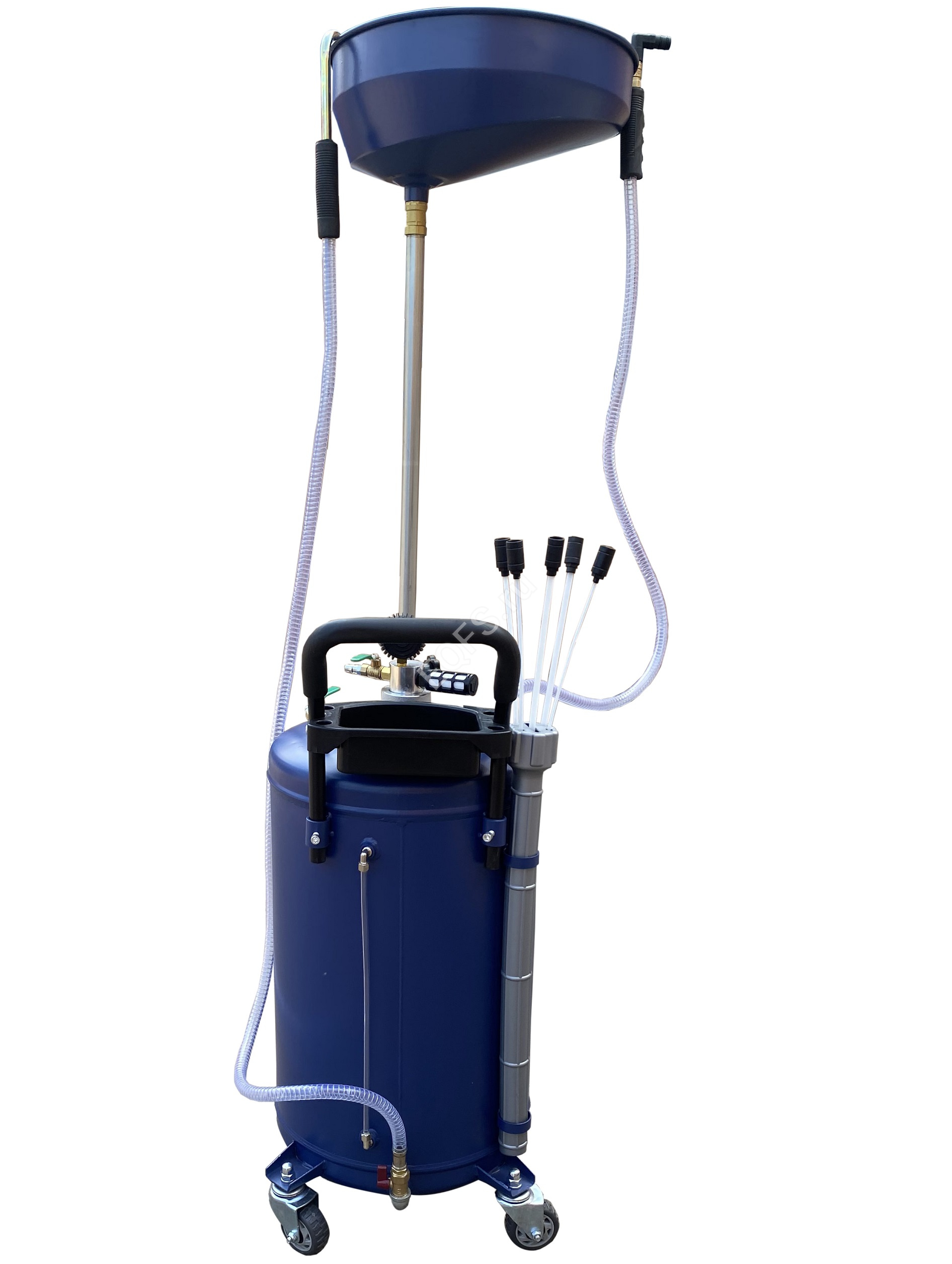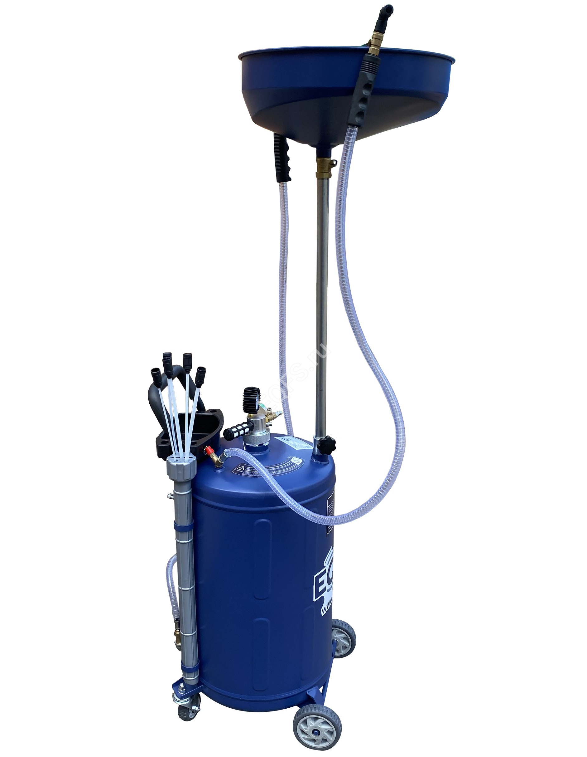 Установка для слива/откачки масла через щупы. Регулировка высоты чаши 970-1570мм. Комплектация: щупы - 5 гибких разного диаметра, манометр (давление/вакуум), лоток, прозрачная трубка для контроля «отработки» в баке. Подключение к пневмолинии - быстросъём. Ёмкость 90л. = Бак 80л + сливная воронка 10л.