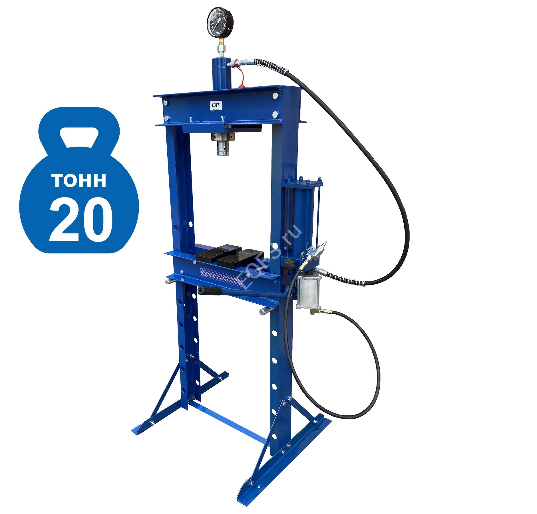 · Пресс укомплектован пневмогидравлическим и ручным насосом с максимальным усилием 20т.
