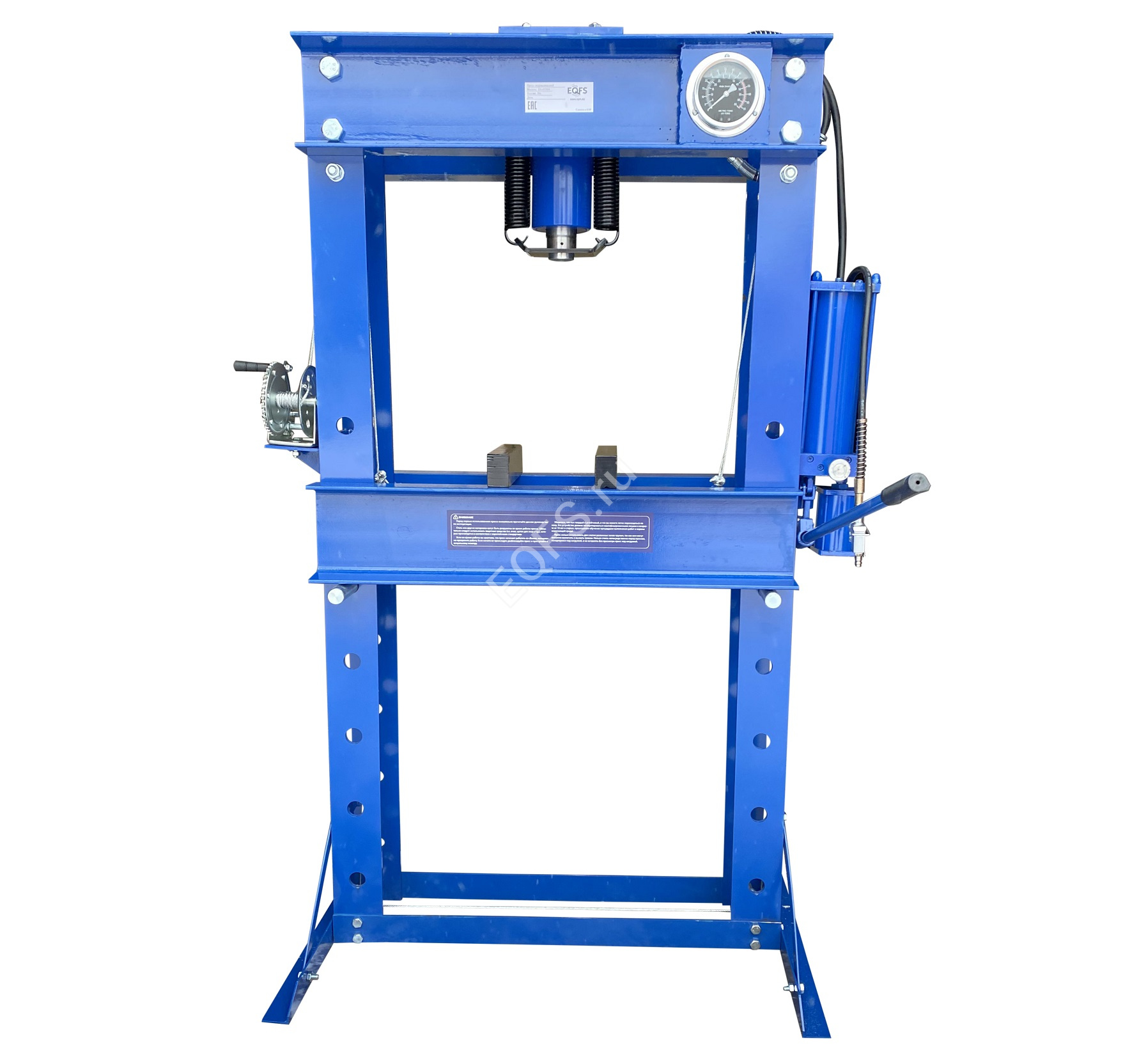 · Пресс укомплектован гидравлическим ручным насосом и пневмогидравлическим с максимальным усилием 50 тонн.