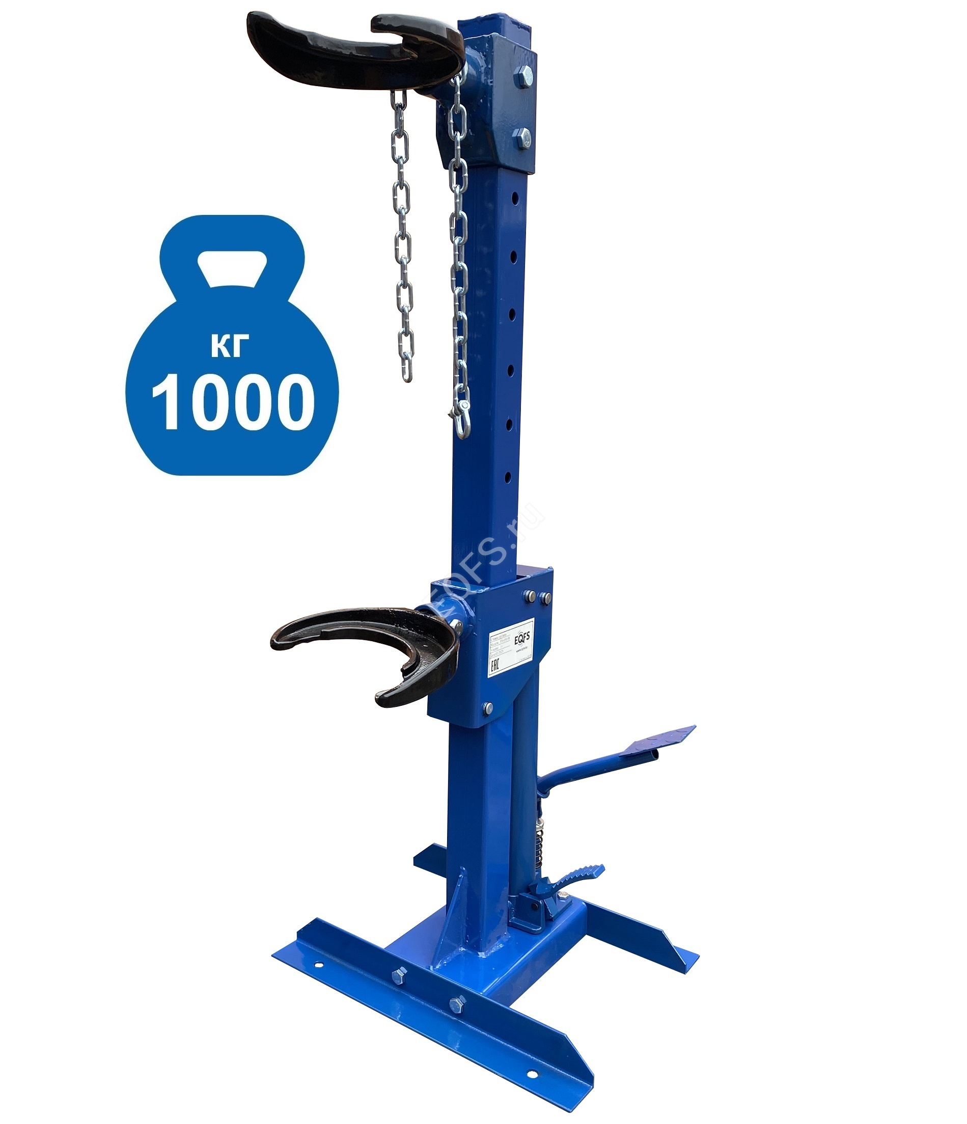 Профессиональная. Напольная с ножным приводом. Облегчает монтаж / демонтаж особо прочных пружин со стойки. Для работы со стойками легковых автомобилей, джипов, микроавтобусов и коммерческого автотранспорта. 8 Ступенчатая регулировка (регулируется по длине пружины). С гидравлическим цилиндром усилием 1000 кг. Ход поршня 325 мм. Диаметр пружины 101 - 180 мм. Рабочая длина min-max 195-520 мм. Цвет темно-синий.