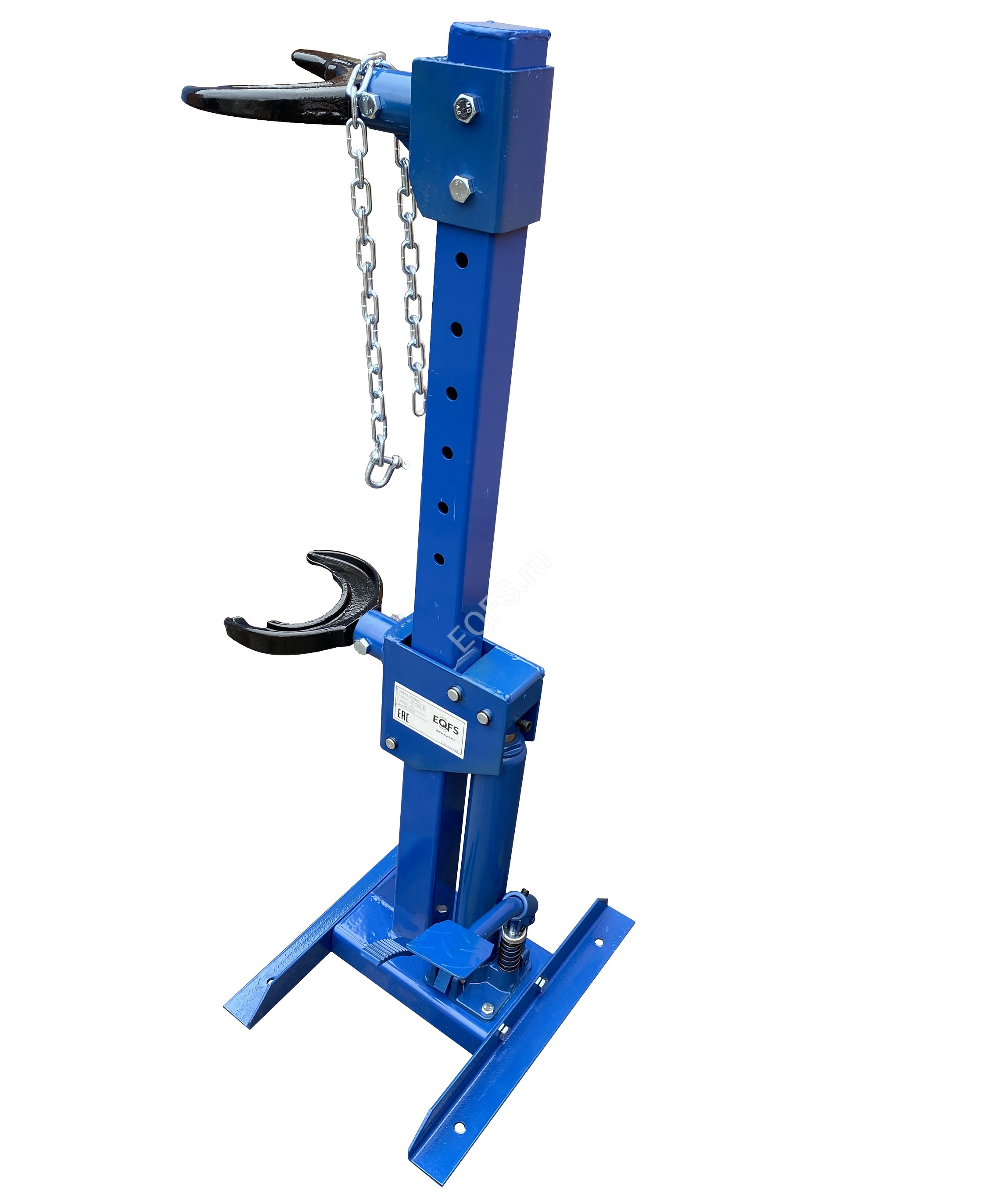 Профессиональная. Напольная с ножным приводом. Облегчает монтаж / демонтаж особо прочных пружин со стойки. Для работы со стойками легковых автомобилей, джипов, микроавтобусов и коммерческого автотранспорта. 8 Ступенчатая регулировка (регулируется по длине пружины). С гидравлическим цилиндром усилием 1000 кг. Ход поршня 325 мм. Диаметр пружины 101 - 180 мм. Рабочая длина min-max 195-520 мм.
