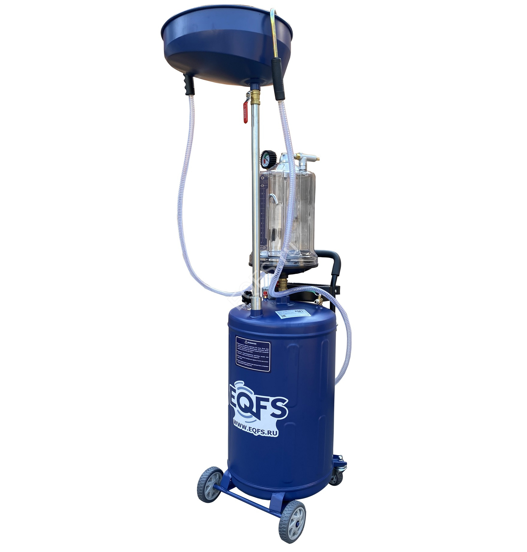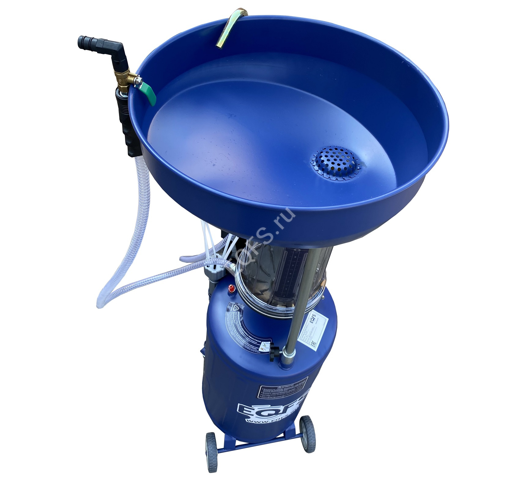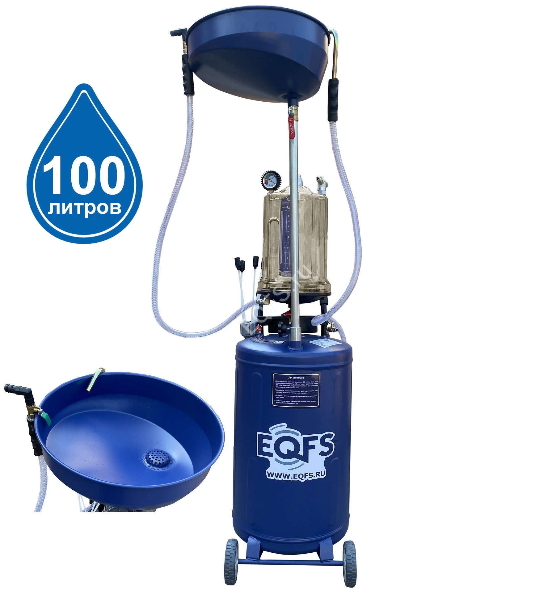 Установка для слива и откачки масла вмещает 100 литров отработанного масла и антифриза. Бак 80л + Предкамера (колба) 10 л. + чаша (воронка) 10л.